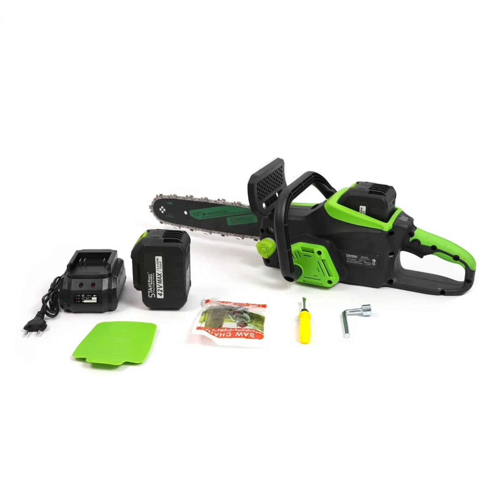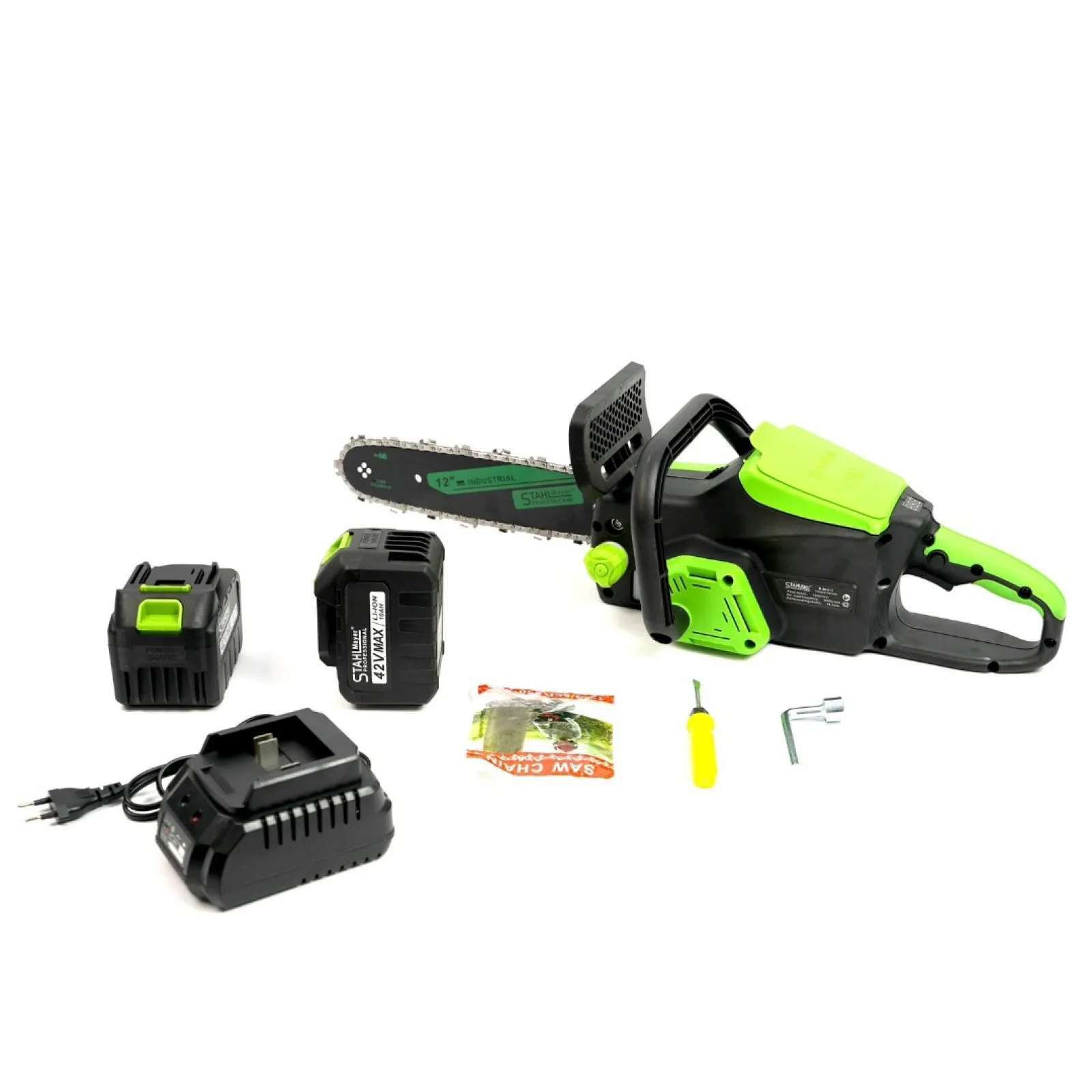 Акумулаторна резачка 42V 10AH С Автоматично омасляване ДВЕ БАТЕРИИ И ДВЕ ВЕРИГИ 30 см шина . STAHLMAYER