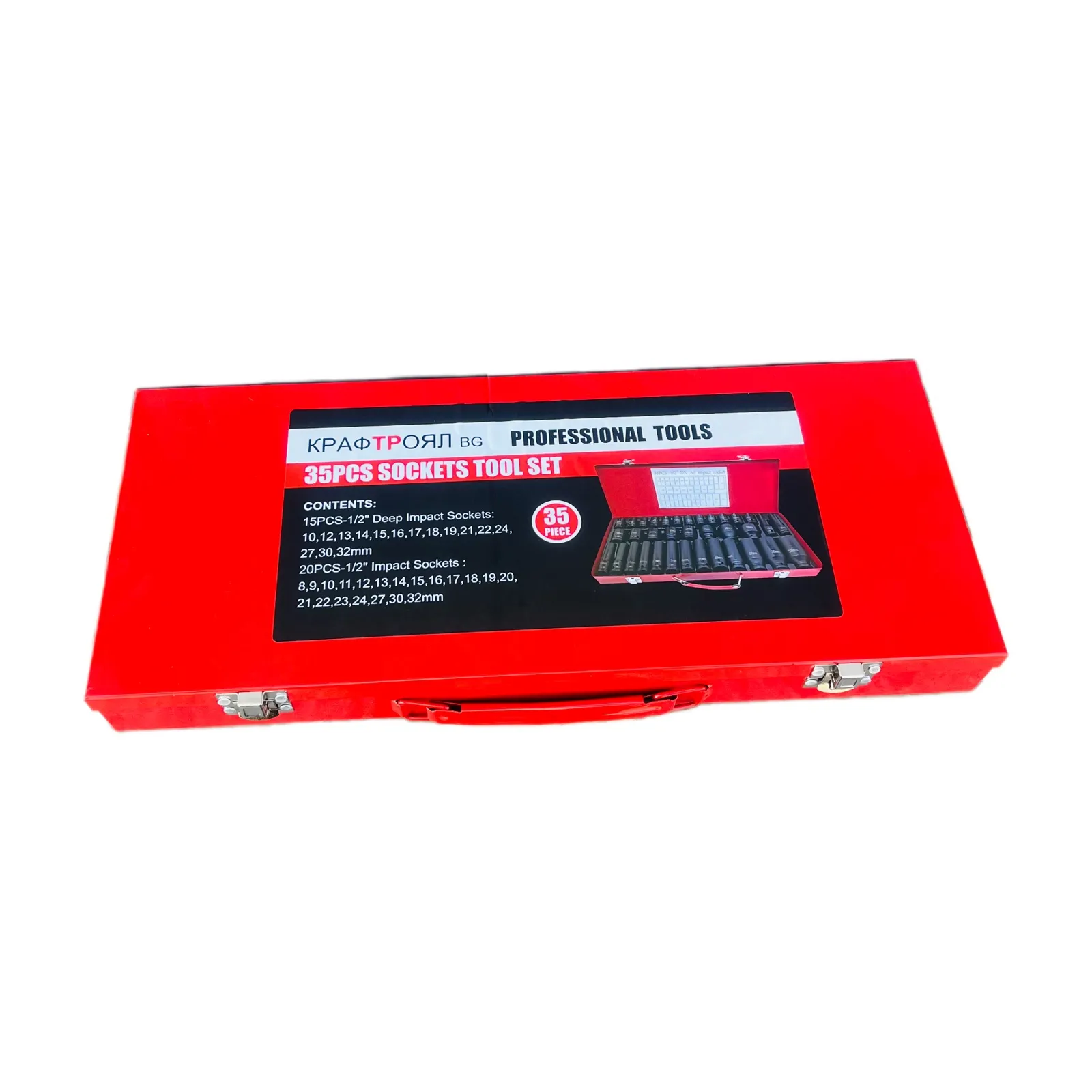 Комплект ударни вложки 1/2″ KRAFTROYAL – 35 части (8–32 мм), стандартни и дълбоки