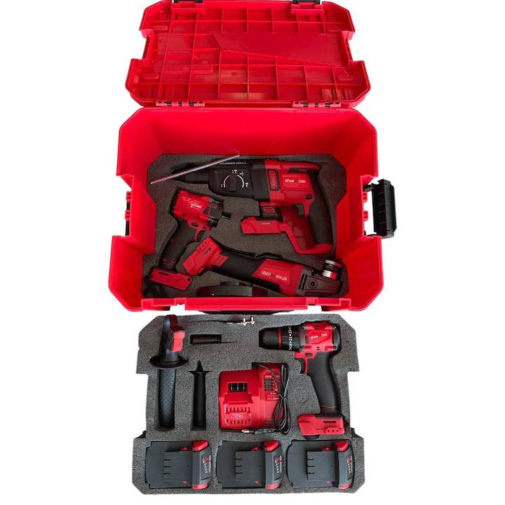 Професионален комплект акумулаторни инструменти KraftRoyal Red MX Fuel 4 в 1 – МОДЕЛ 2025