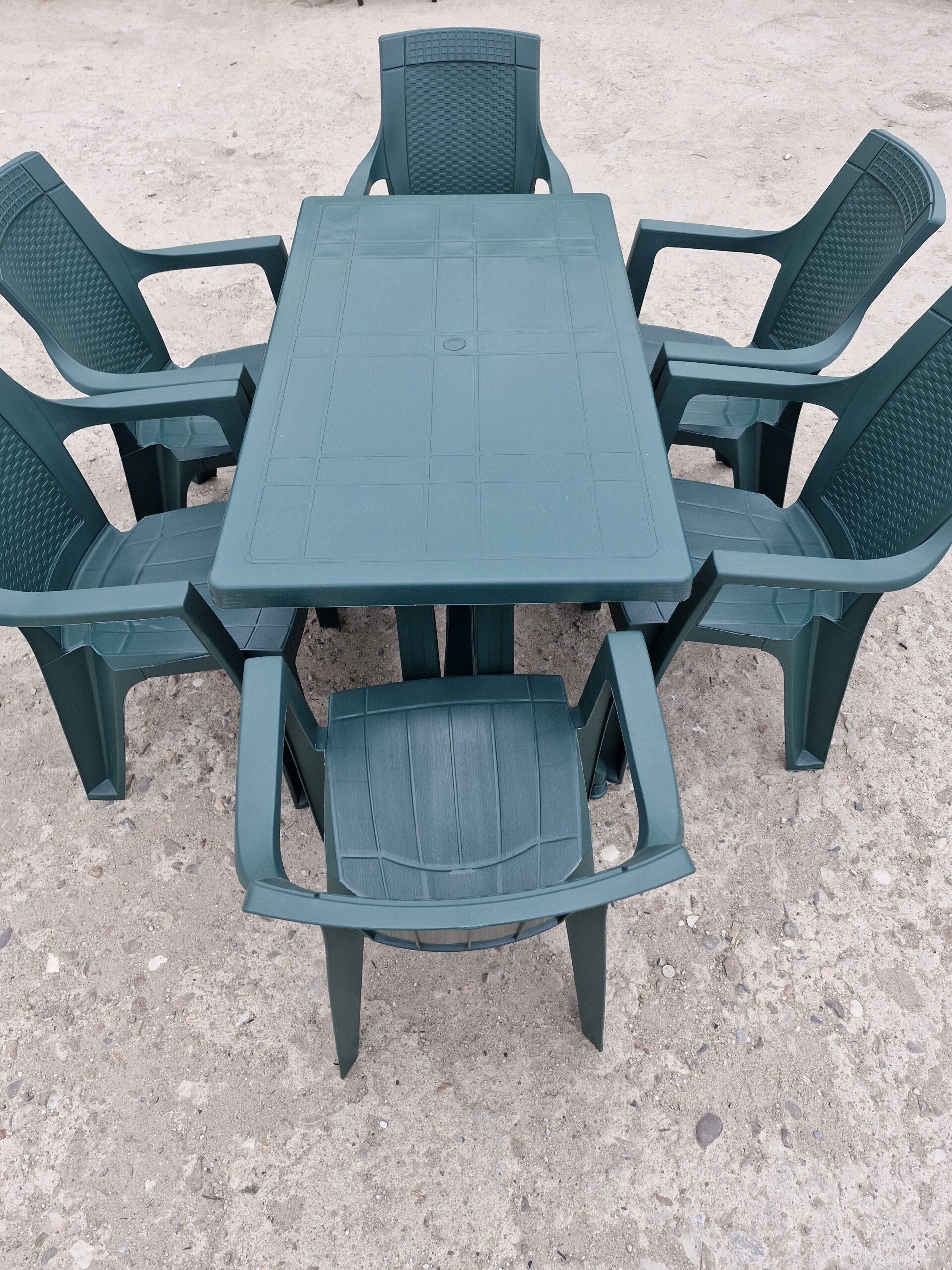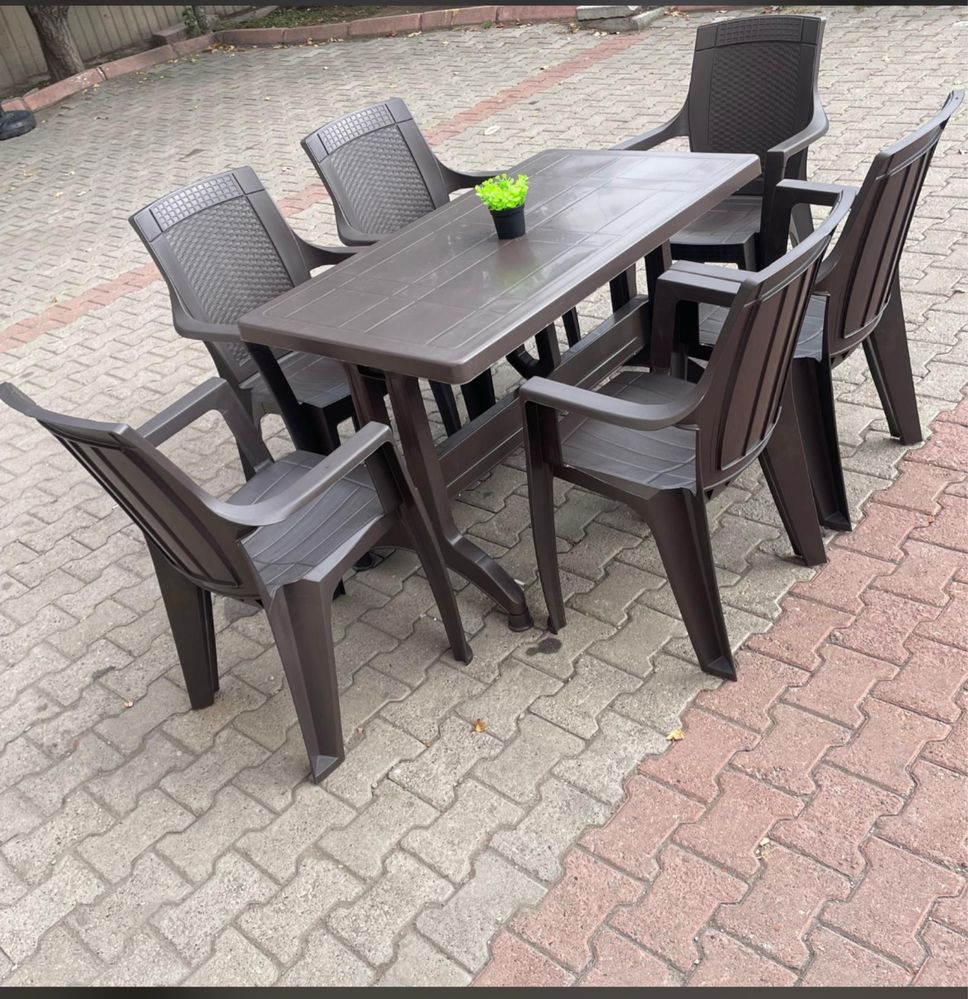 Търсите стилен и издръжлив комплект за градината, балкона или терасата? Представяме ви практичен и устойчив комплект маса и шест стола, идеален за вашето външно пространство.
