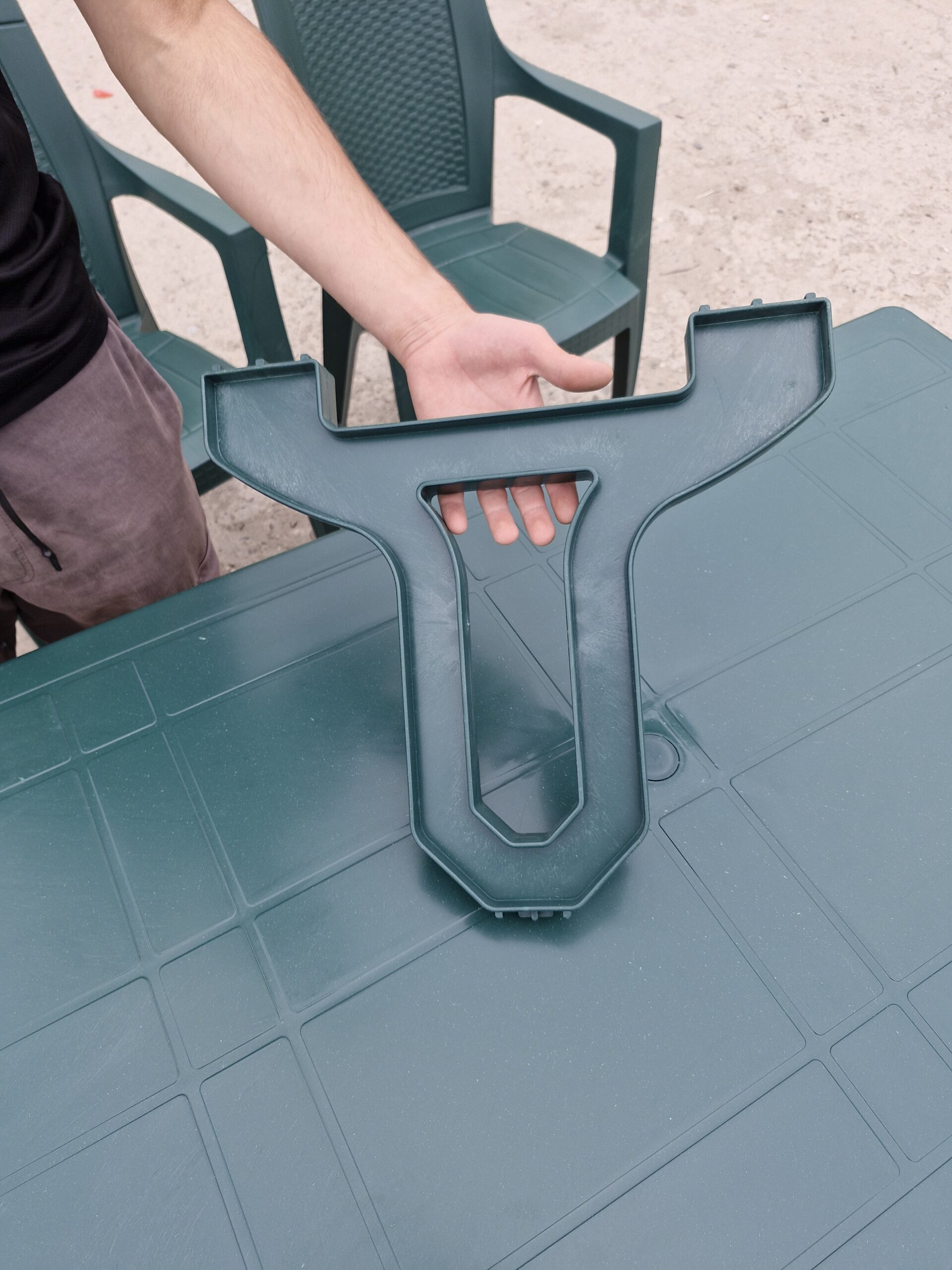 • Масата разполага със специално място за чадър – идеално решение за летните дни