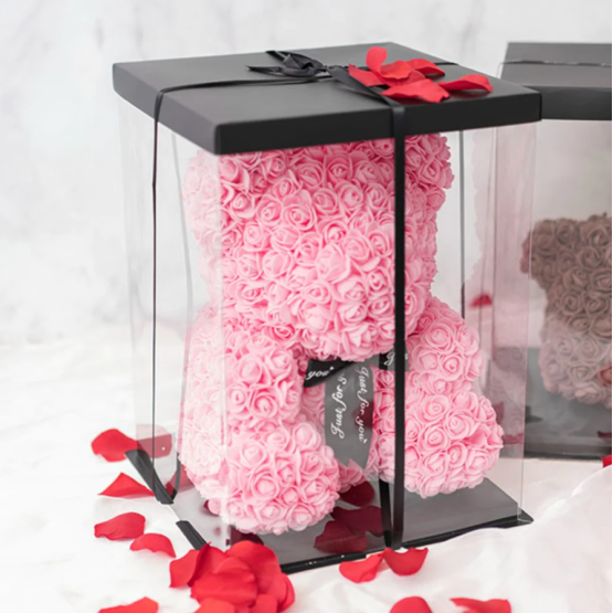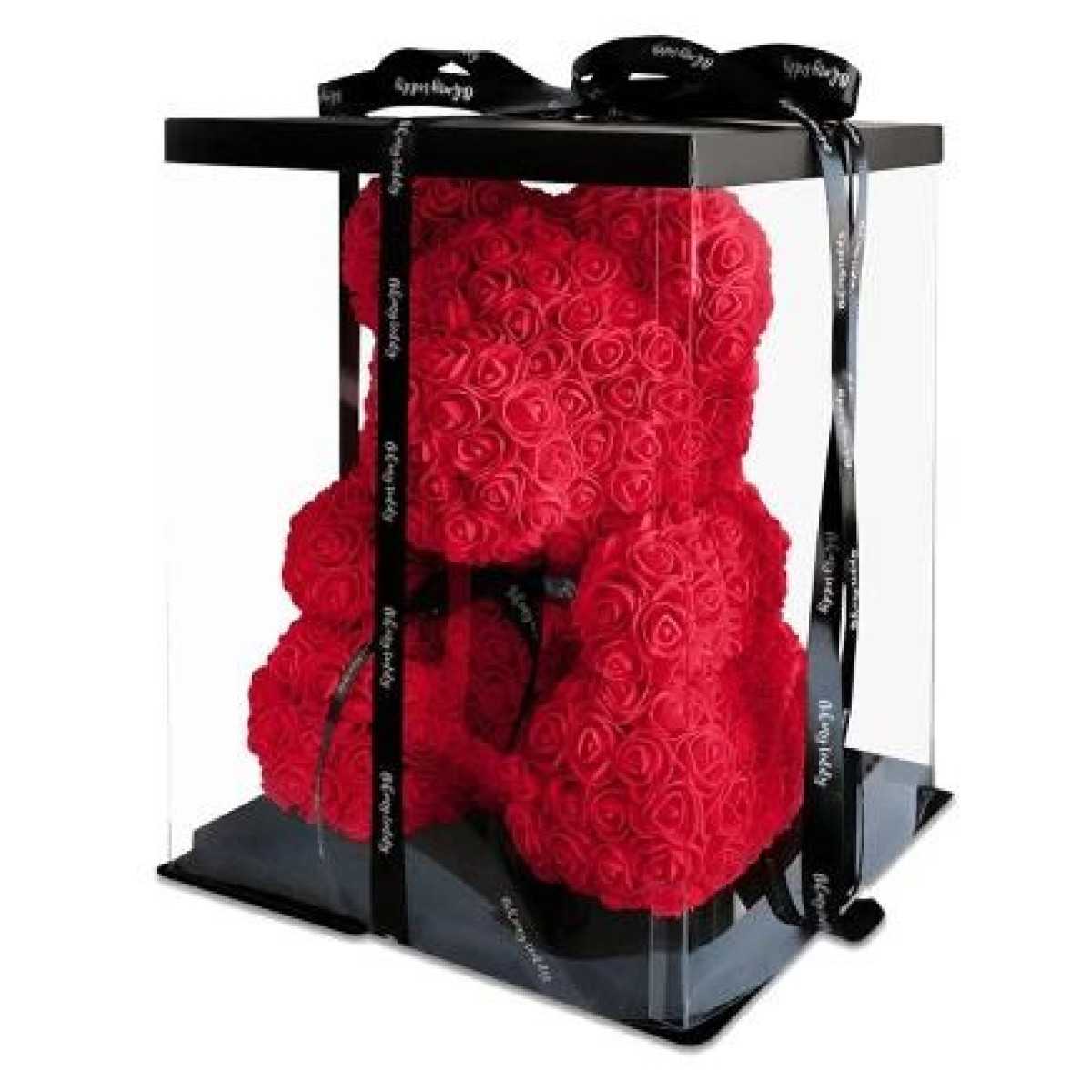Това е подарък, който съчетава нежността на плюшено мече и романтиката на розите в едно изискано бижу.