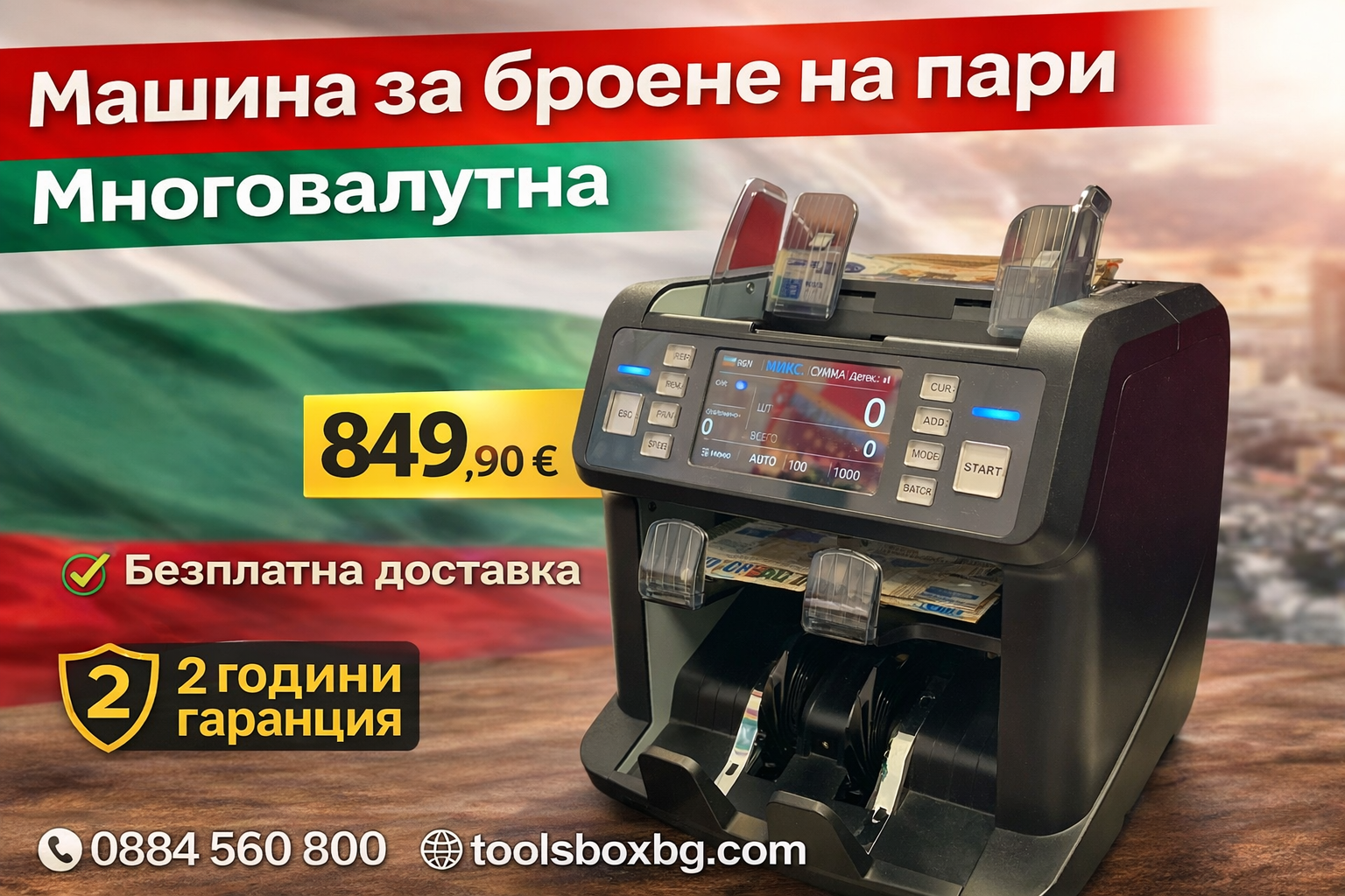 • Smart старт - автоматично започва броене при поставяне на банкноти